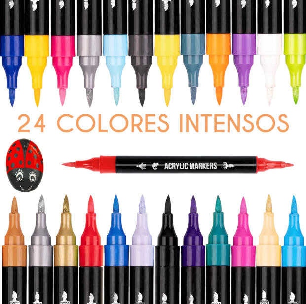 -24 dual-tip permanent acrylic markers: Fine tip/Brush tip
